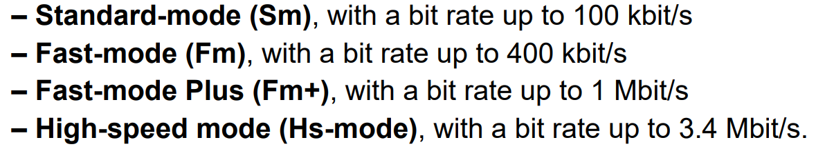 I2C 통신은 전송속도에 따라 다음과 같은 transfer mode가 존재합니다.